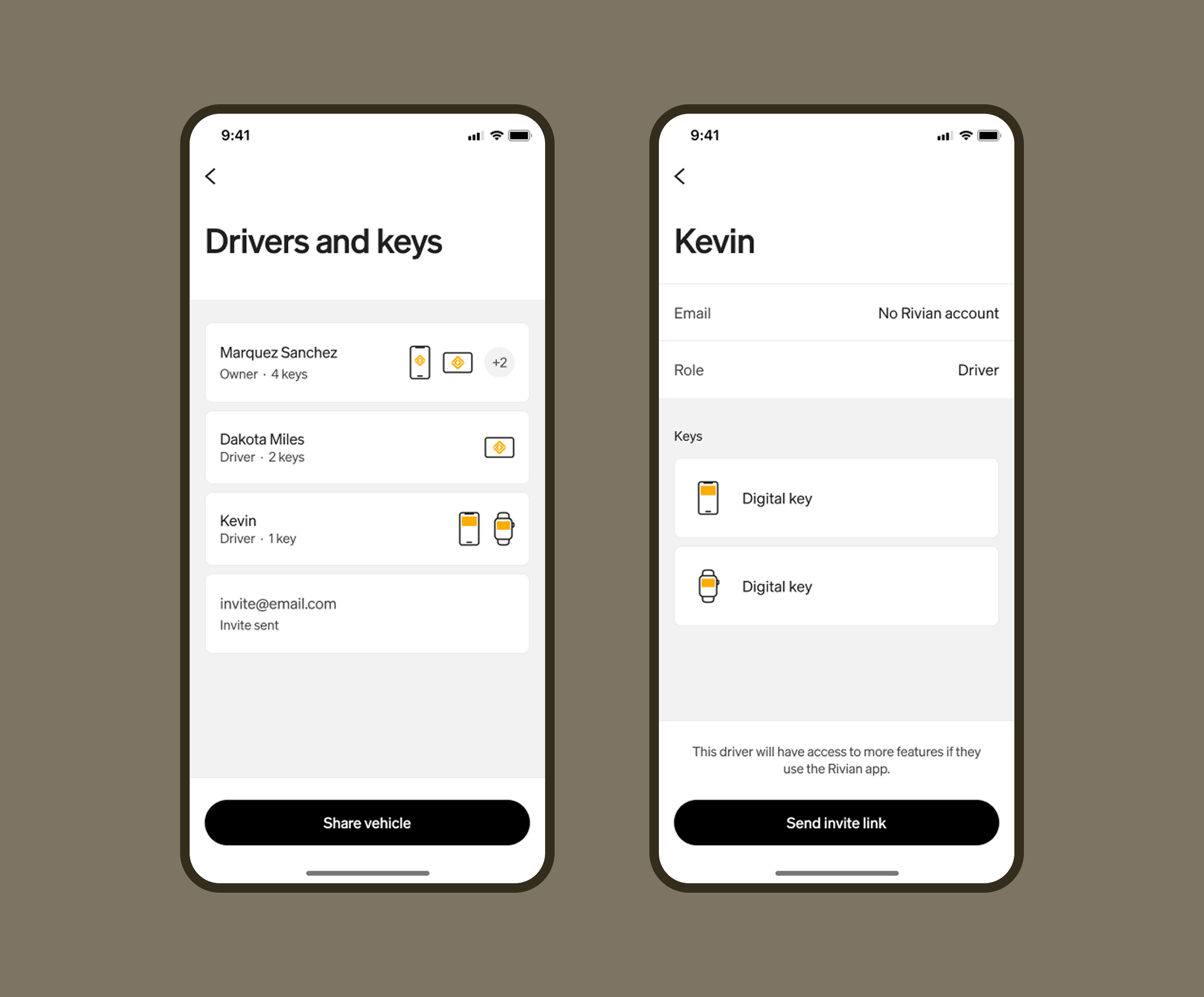 Our drivers and keys experience needed to be updated to reflect the new digital key and associated non-credentialed drivers that could be updated once keys were linked to a Rivian account.