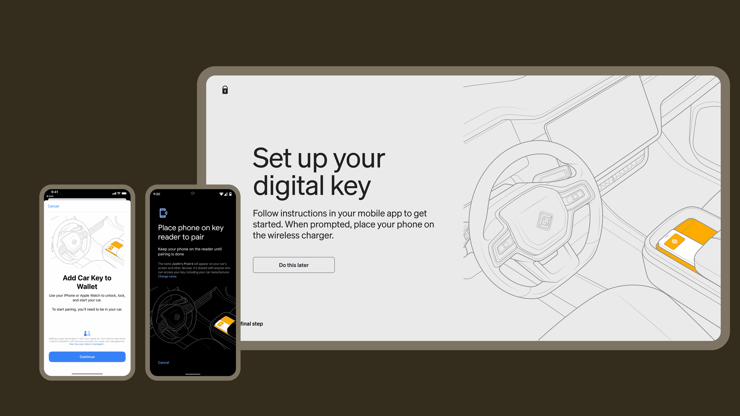 In partnership with Apple, Google, and Samsung* we’re bringing our phone key to device wallets as a more accurate and secure digital key for our newest generation of vehicles and any future vehicles.